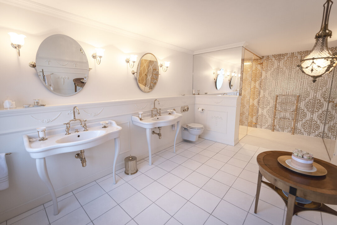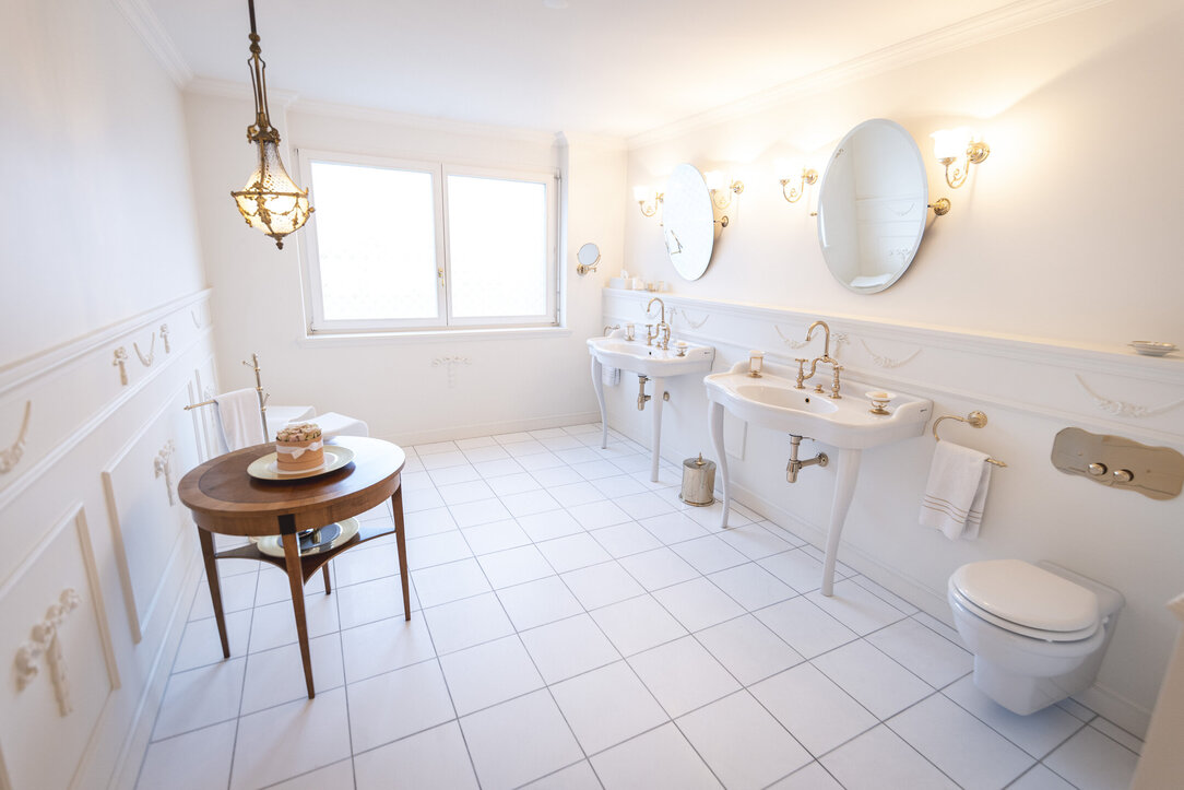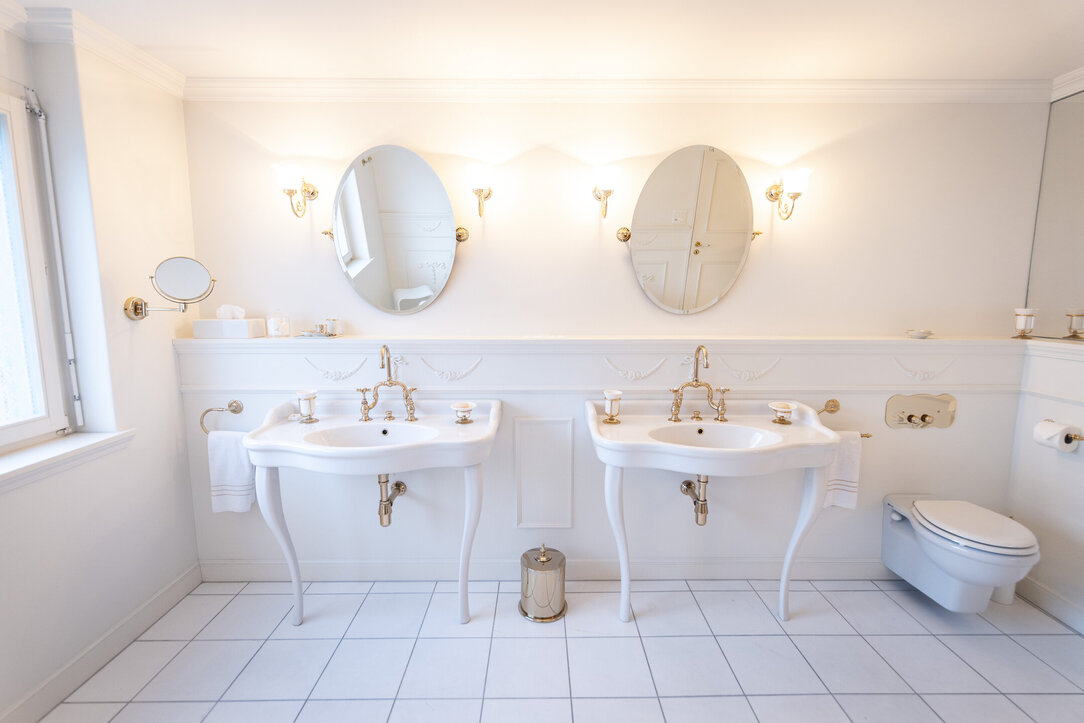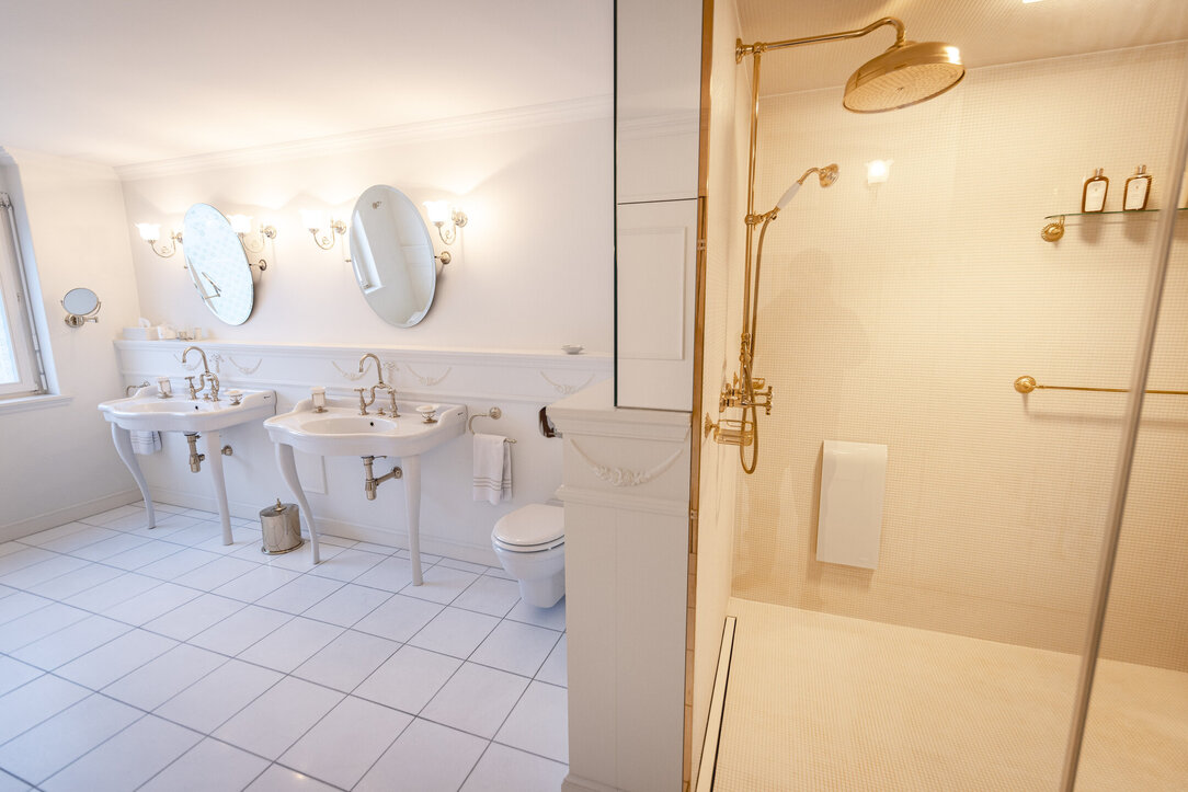 Die Sanitärartikel stammen von einem namhaften italienischen Designer und verleihen dem Badezimmer eine unverkennbare Eleganz. Jedes Detail ist ein Kunstwerk für sich, sorgfältig ausgewählt und perfekt in Szene gesetzt. In enger Zusammenarbeit mit Antikschreinern und Strukturgipsern haben wir eine harmonisches Zusammenspiel aus Funktion und Ästhetik geschaffen.