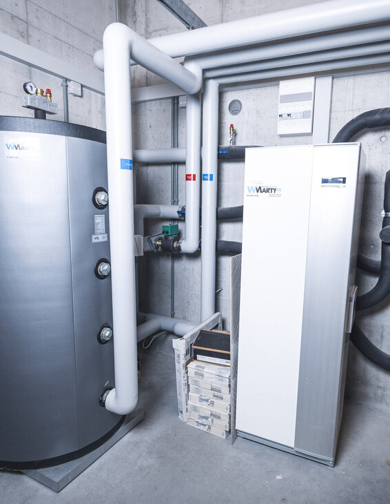 Im Herzen unseres Gebäudes in Amsteg befindet sich eine leistungsstarke Grundwasseranlage, die durch eine grosse Photovoltaik-Anlage optimiert wird. Diese Kombination ermöglicht eine äusserst effiziente Beheizung des gesamten Gebäudes. Die hochmoderne Wärmepumpe der Marke Nibe verfügt über eine Leistung von 14 kW im ON/OFF-Modus sowie 14 kW im Inverterbetrieb und kann gleichzeitig Warmwasser aufbereiten und heizen.